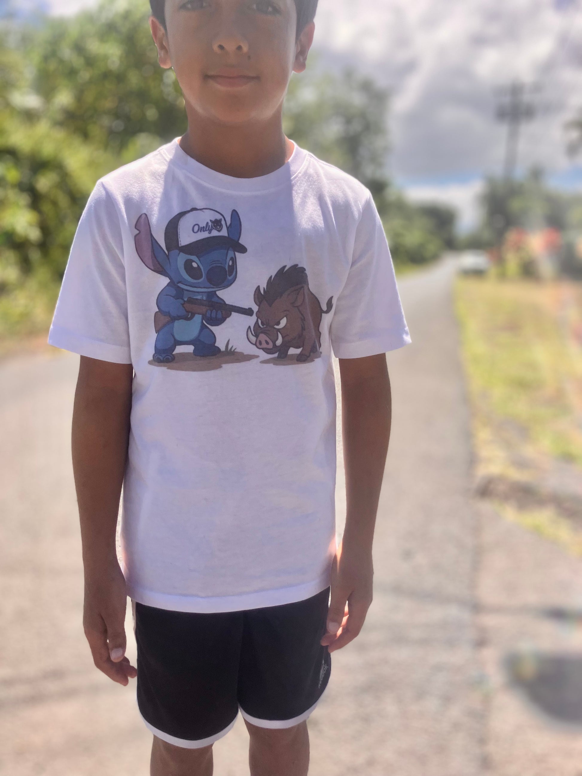 Our Stitch “Boar 30” hunting tee brings the wild vibes of the hunt straight into everyday wear. Featuring Stitch repping his Boar 30 gear and chasing down boars, this design is perfect for hunters, adventurers, and anyone who loves that mauka to makai lifestyle.